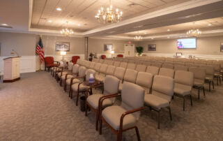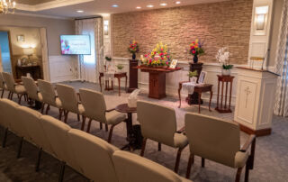 Built in 1991, and redecorated in 2020, our fully handicap accessible funeral home has seating for over 200 guests, ample off street parking and complimentary WiFi. This facility also features a community lounge and coffee bar, a private family and mother’s room, a large arrangement area, two family hospitality areas, as well as casket and cremation product selection rooms. We have a state-of -the art audio and visual system that can play memorial tribute videos on several screens throughout the faciality as well as play musical selections from just about any electronic device. We also have the capability to record and webcast (LIVE-stream) services (Either on site or off-site).